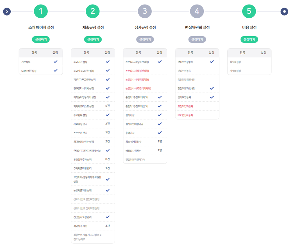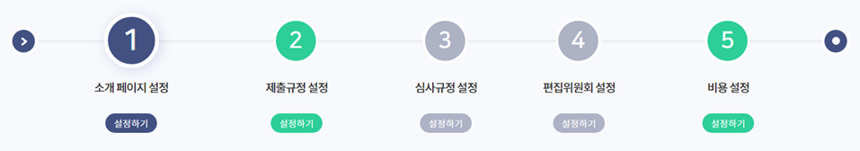 1. 학술지 설정은 5단계로 구분되어 있습니다.