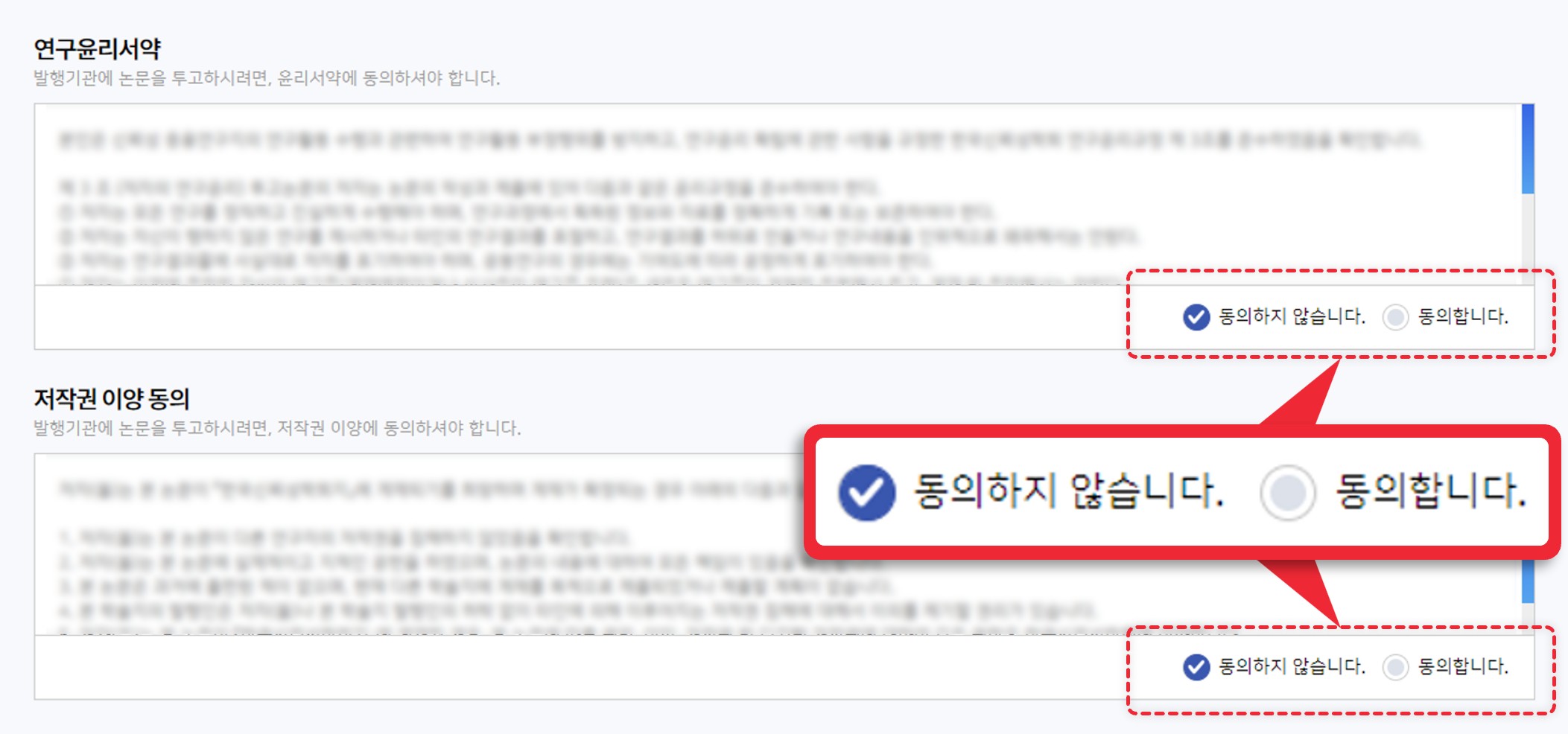 사용 시 투고정보 입력 단계에 노출되며, 투고자는 필수로 체크해야 합니다.