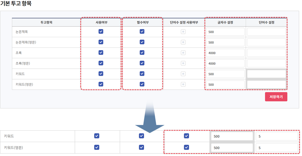 논문정보 입력 단계에 노출될 항목을 설정합니다.