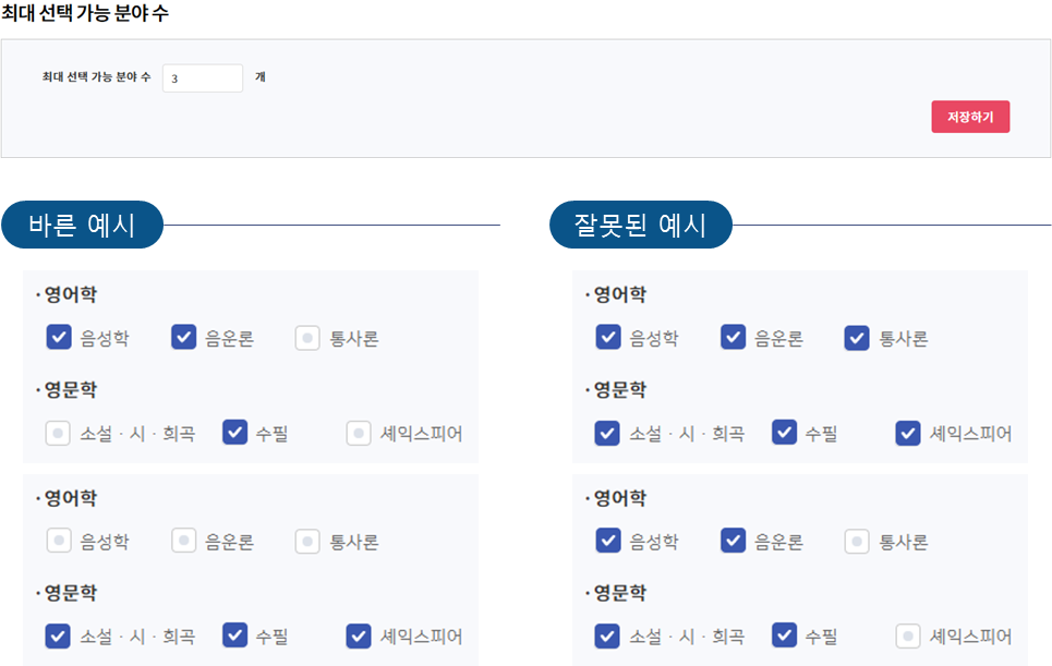 중분류 상관없이 모든 분야를 기준으로 투고자가 선택 가능한 총 개수를 설정합니다.