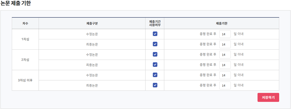 학술지별 설정 2단계 - 제출규정 설정