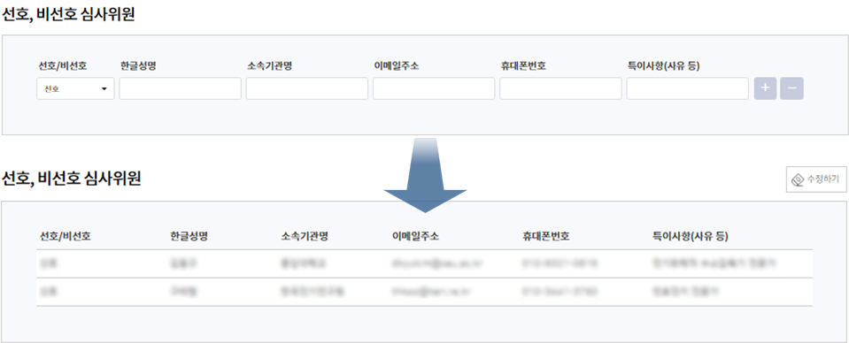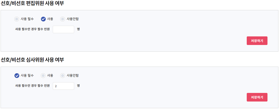 2) 선호/비선호 편집위원 및 심사위원 사용 여부
