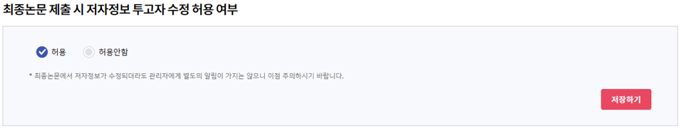 4) 최종논문 제출 시 저자정보 투고자 수정 허용 여부