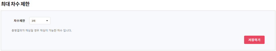 5차까지 설정 가능하며, 화면에서 조회되는 차수가 [5차]이면 제출이 제한됩니다.이때, 누리미디어에 차수 추가를 별도 요청하셔야 합니다.