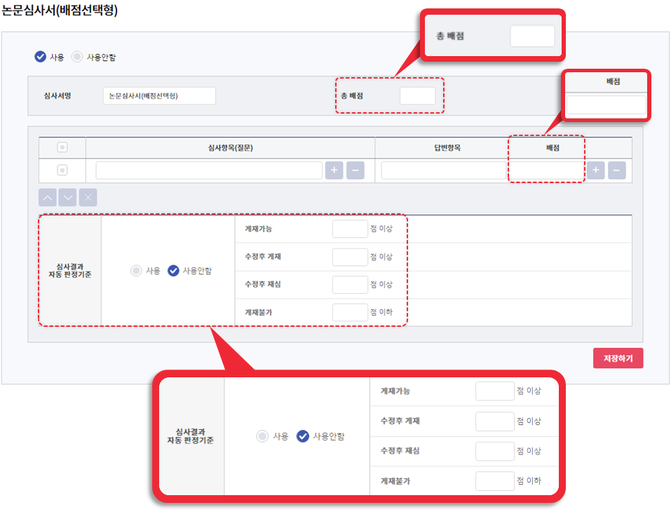 점수 설정을 반드시 해야 심사가 정상적으로 진행됩니다.