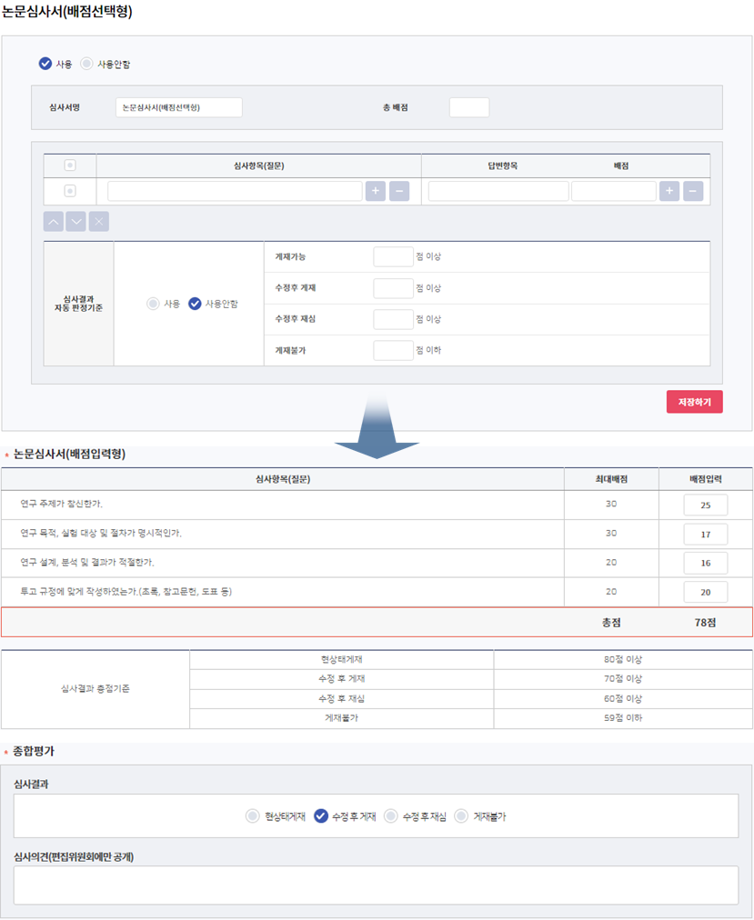 결재 전까지 투고자에게 심사결과(총평결과)가 보이지 않습니다.