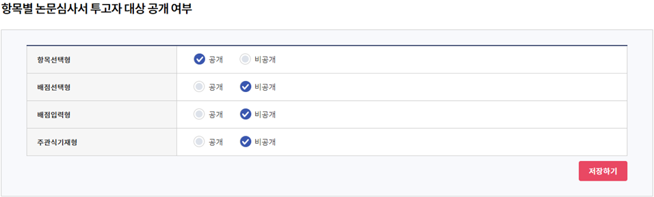1) 항목별 논문심사서 투고자 대상 공개 여부