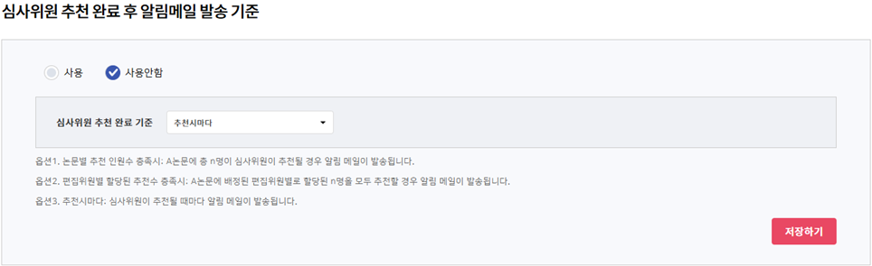 3) 심사위원 추천 완료 후 알림메일 발송 기준