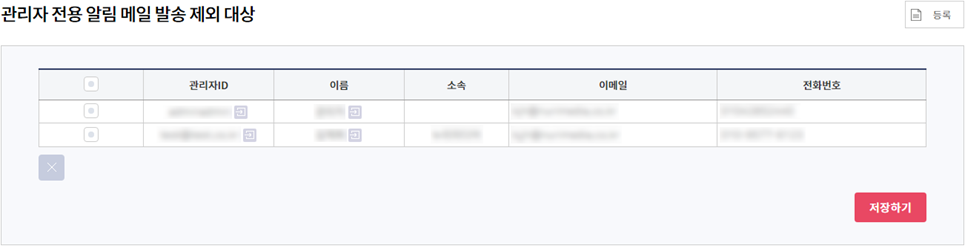 홈페이지 관리자 등급은 모두 관리자 알림 메일을 수신하게 되나, 기관 사정에 따라서 수신을 원치 않을 경우 발송 제외 대상을 추가할 수 있습니다.