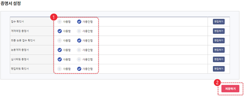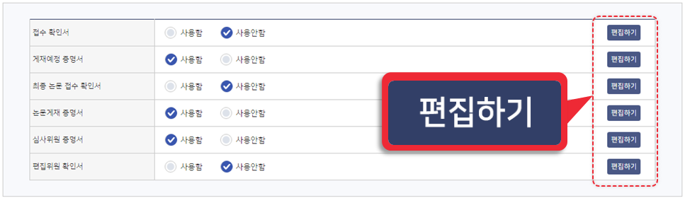 3.편집하기를 클릭하여 증명서 내용을 설정합니다.
