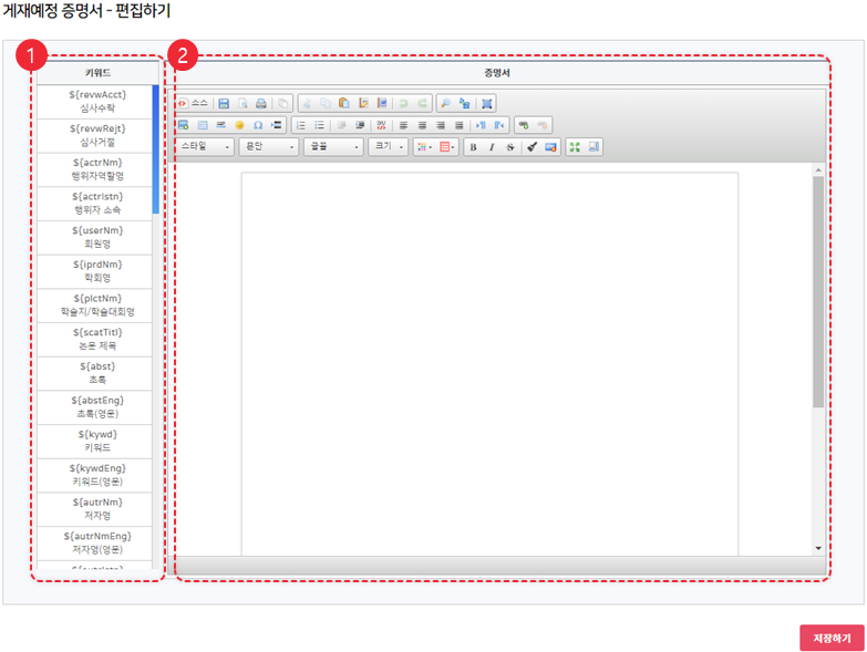 4.(맵핑)키워드와 에디터를 활용하여 자유롭게 입력합니다. 완료되면 저장하기 클릭